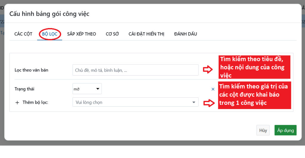2. Tìm kiếm công việc trong dự án