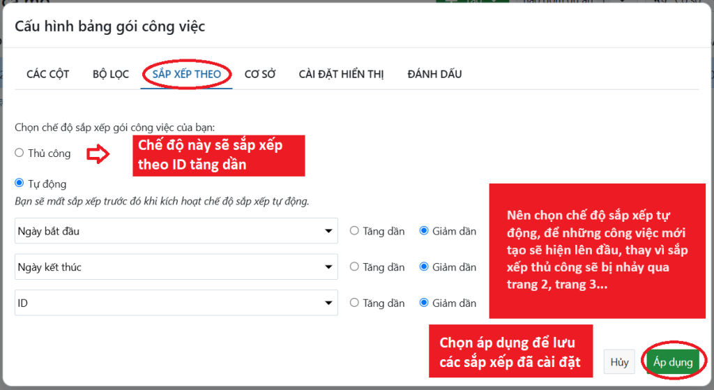 3. Sắp xếp danh sách công việc trong dự án