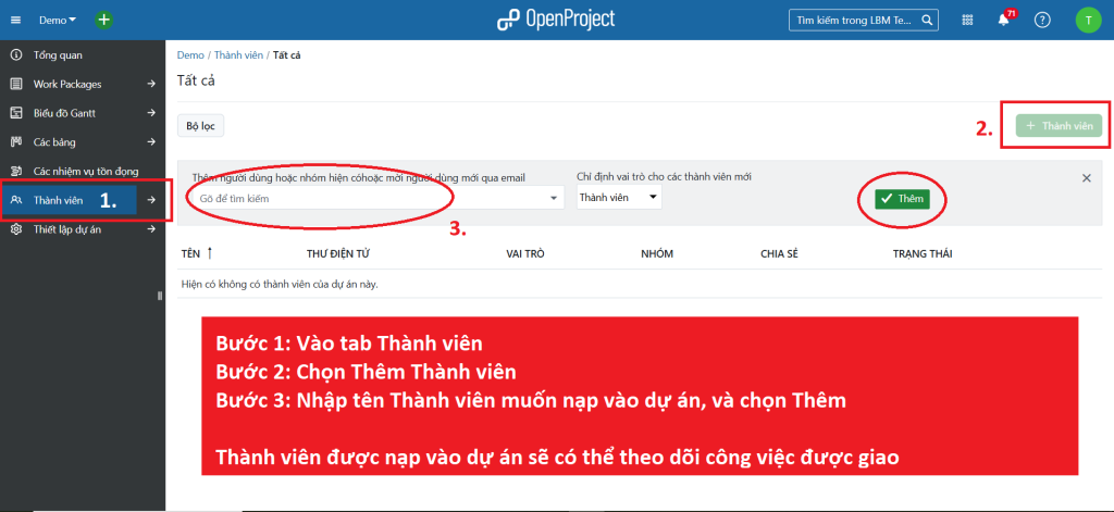 II. Nạp thành viên vào dự án: