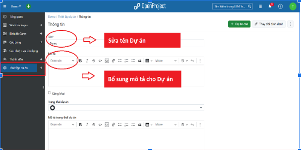 - Bổ sung mô tả cho dự án ở tab Thông tin