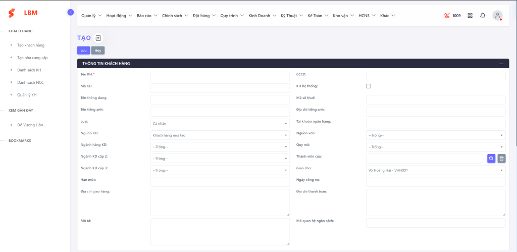 Tạo Khách Hàng