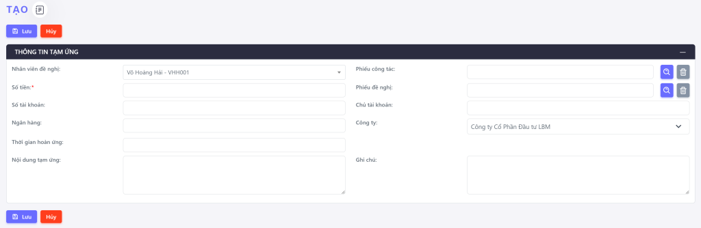 Advance Request – Tạm ứng